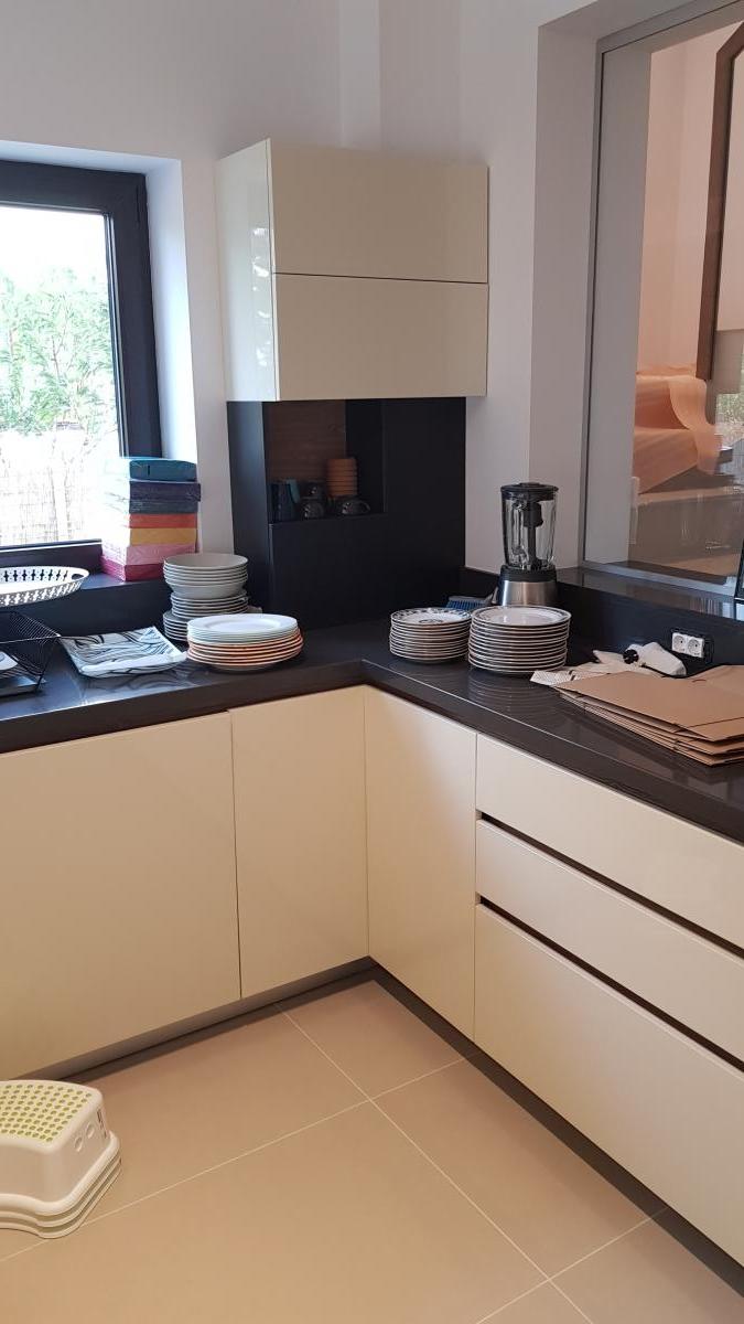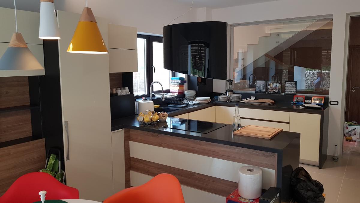 / Bucatarie MDF vopsit lucios cu insula si Blat din granit