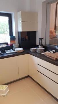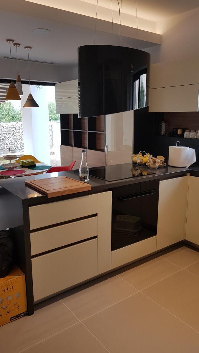 Bucatarie MDF vopsit lucios cu insula si Blat din granit