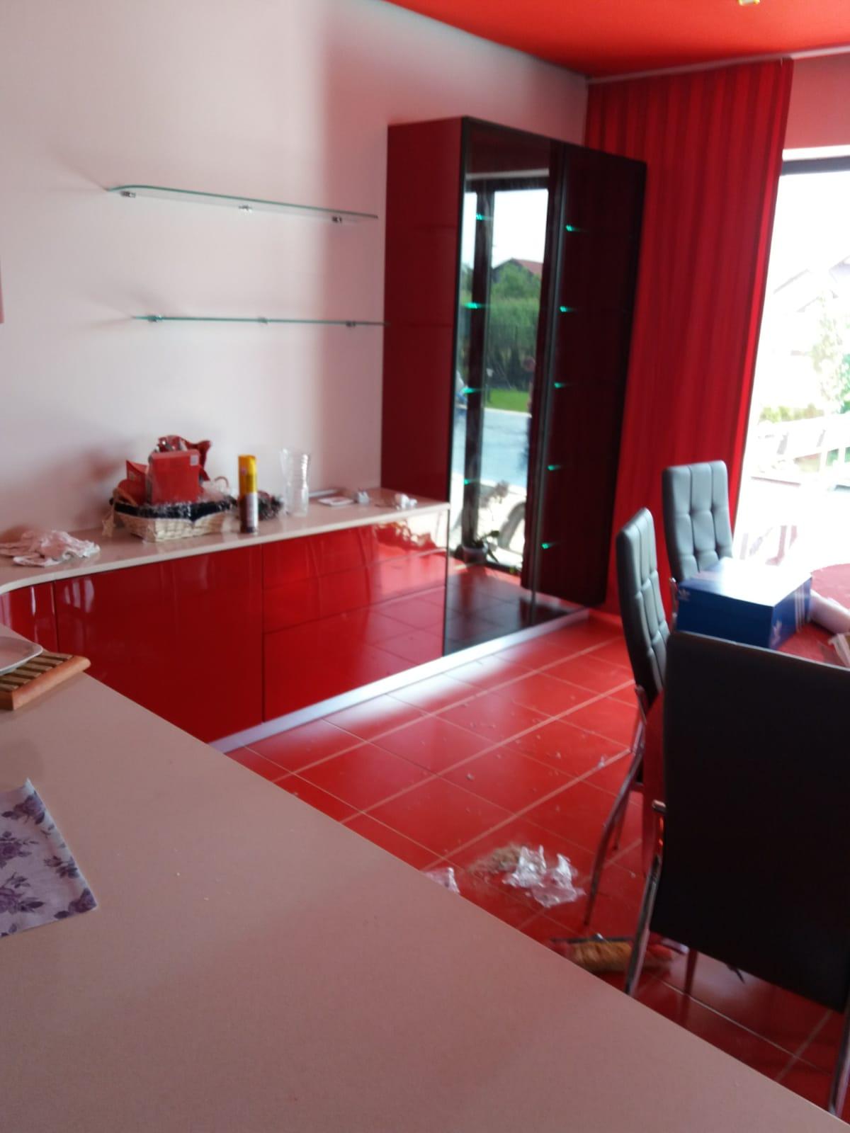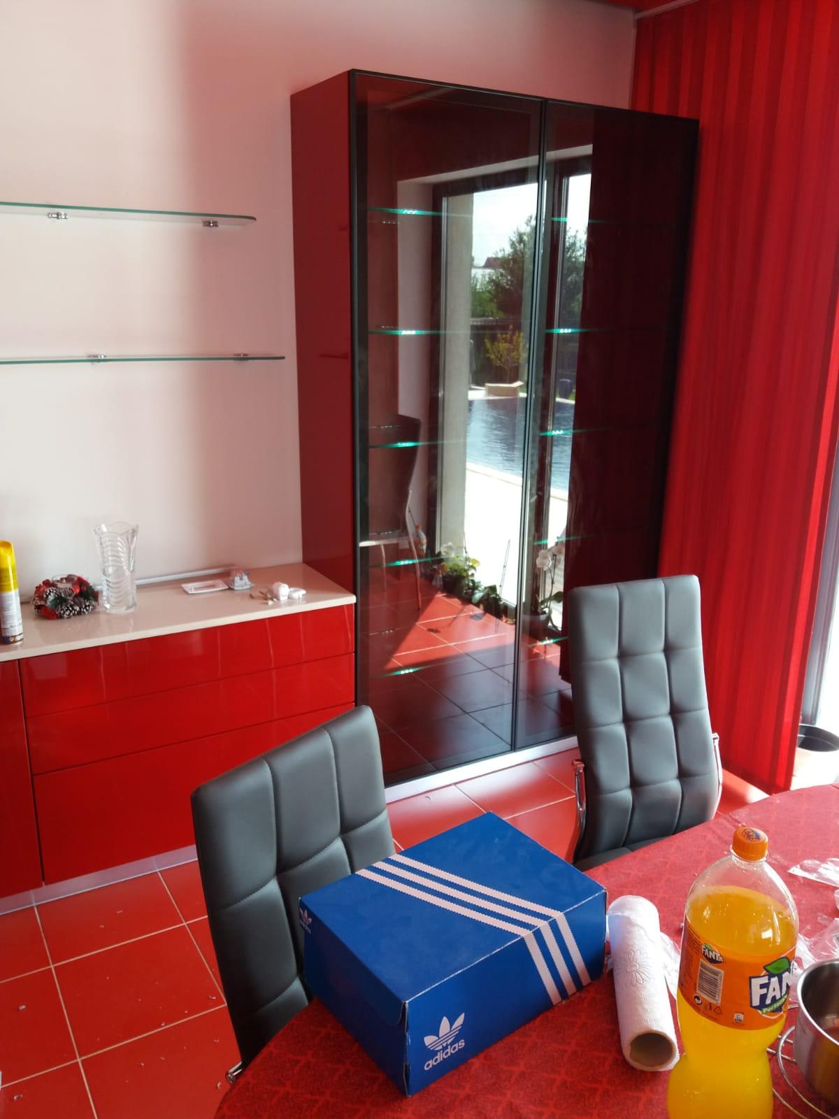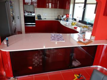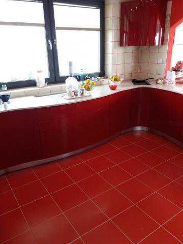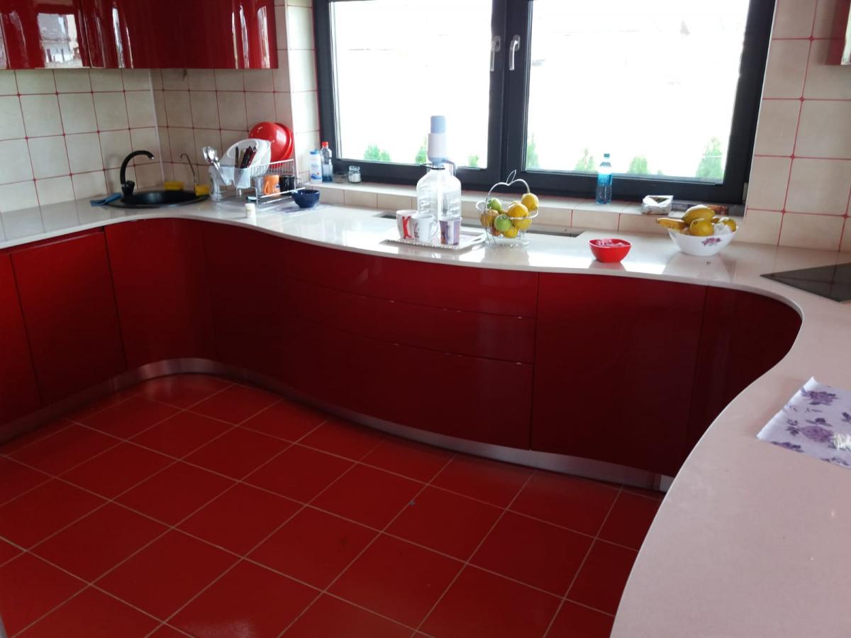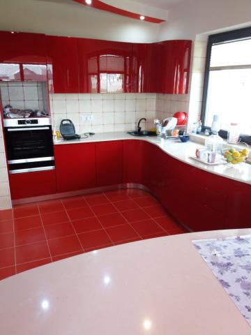 / Bucatarie rotunda cu usi MDF Curbat lucios rosu