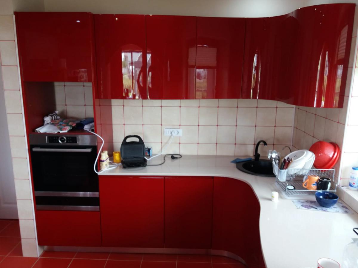 Bucatarie rotunda cu usi MDF Curbat lucios rosu